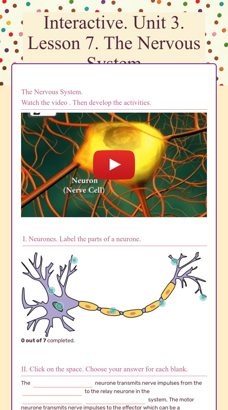 Nervous System Activity Worksheet - Inside Out Anatomy The Nervous System Worksheet Education Com -. Learn more about how the pns works. Disorders of the nervous system include stroke, infections, such as meningitis, carpal tunnel syndrome, and functional disorders, such as headache and epilepsy. This system works automatically (autonomously), without a person's conscious effort. Read these articles to learn more about your brain and central nervous system. Together they control all th.